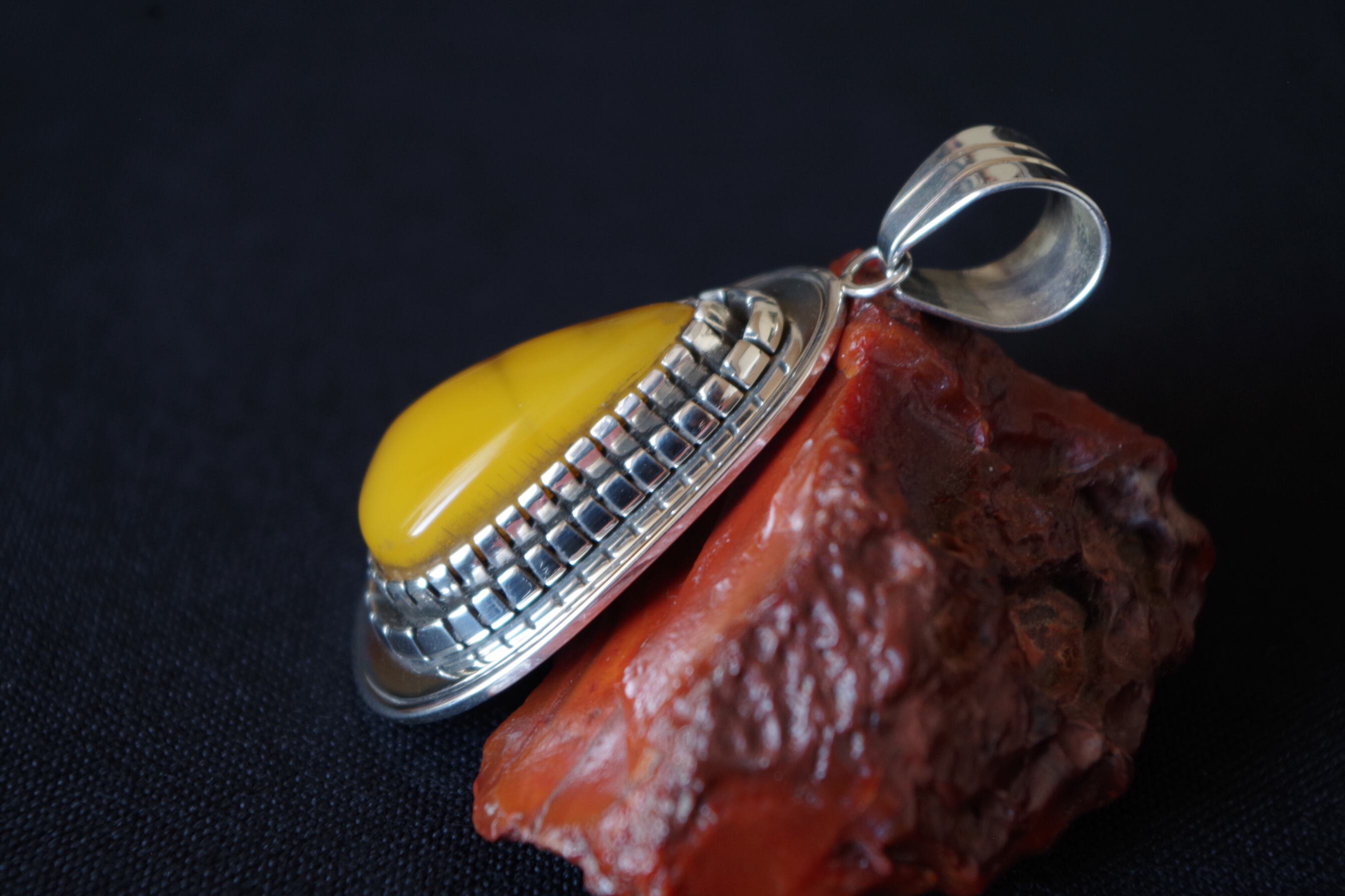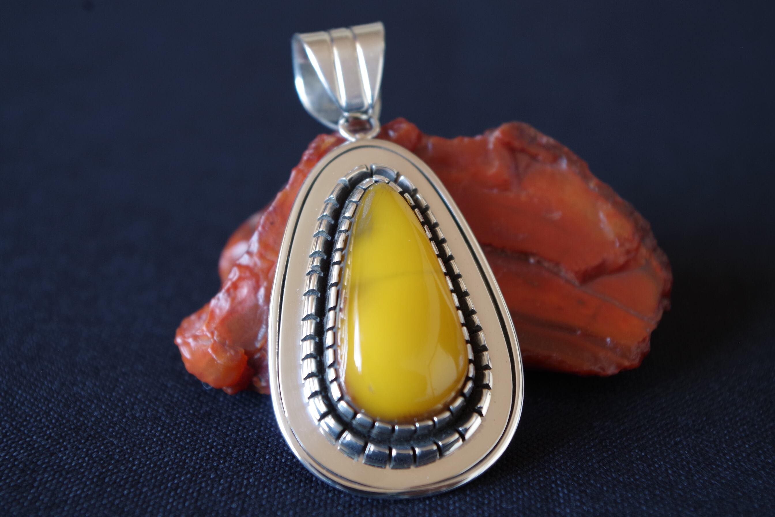 ナバホ族 Marian Nez マリアンネズ バルティックアンバー (琥珀) シルバーペンダント インディアンジュエリー