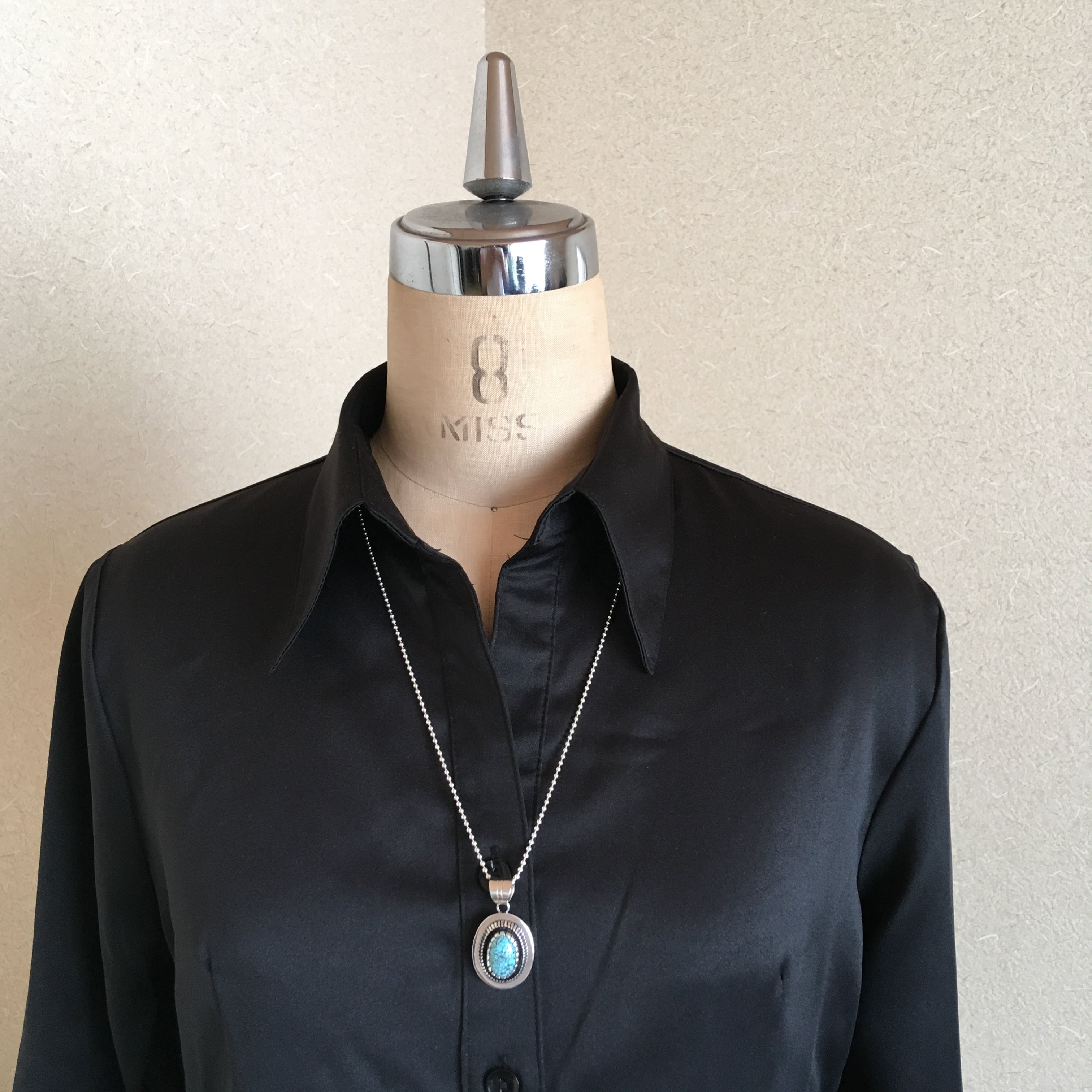ネバダ州コッパーキャニオン鉱山で採れたナチュラルターコイズのカボションをマリアンネズに渡してオーダーした世界にひとつのペンダントです