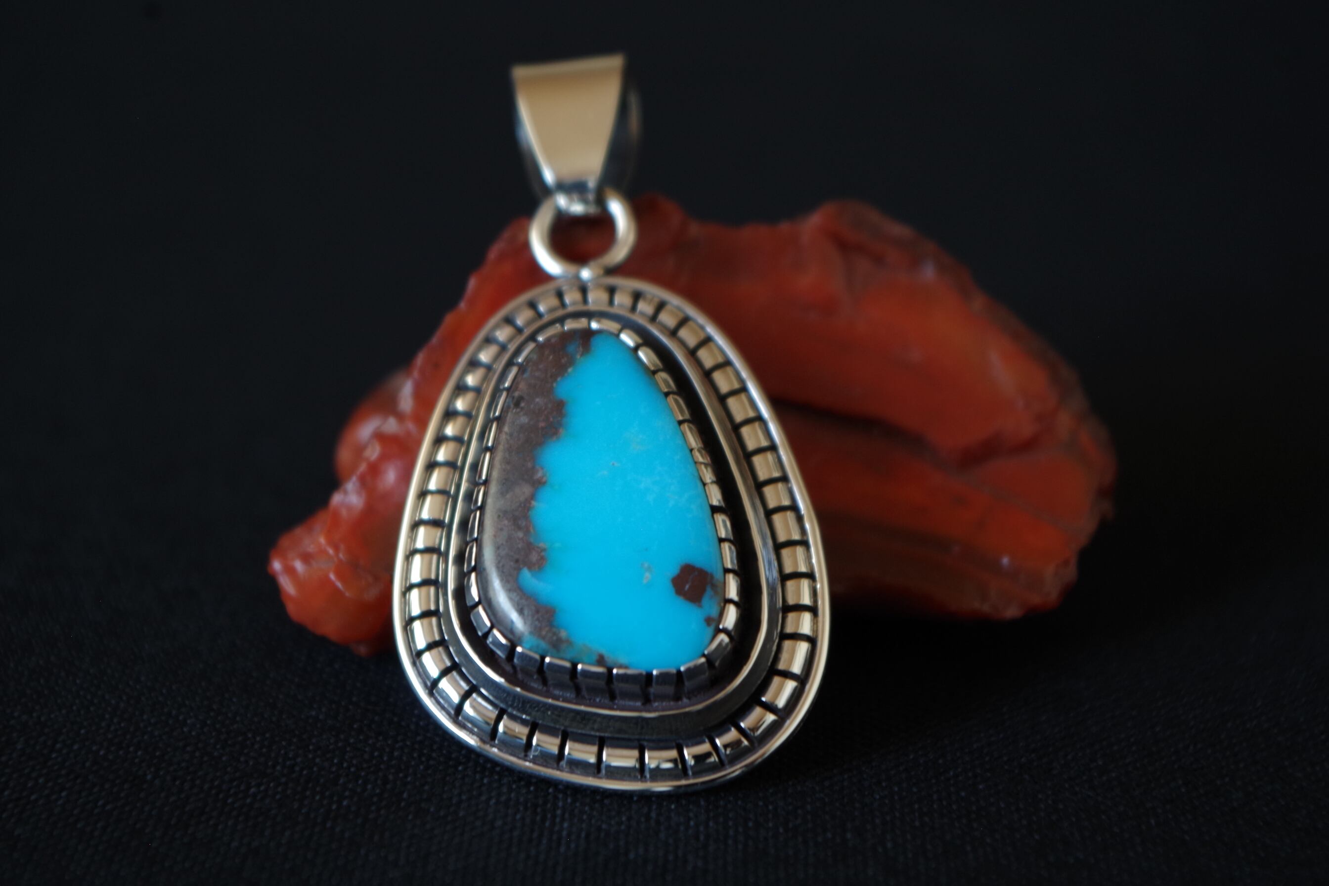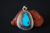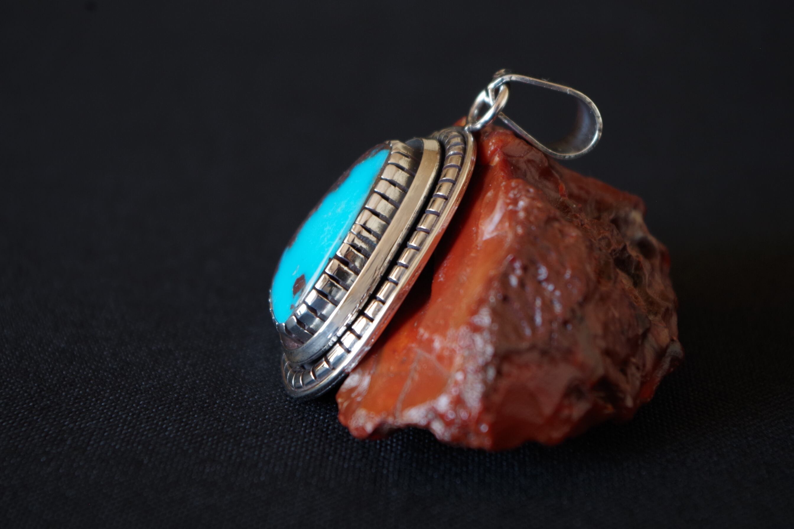 ナバホ族 Marian Nez マリアンネズ ビズビーターコイズ シルバーペンダント インディアンジュエリー