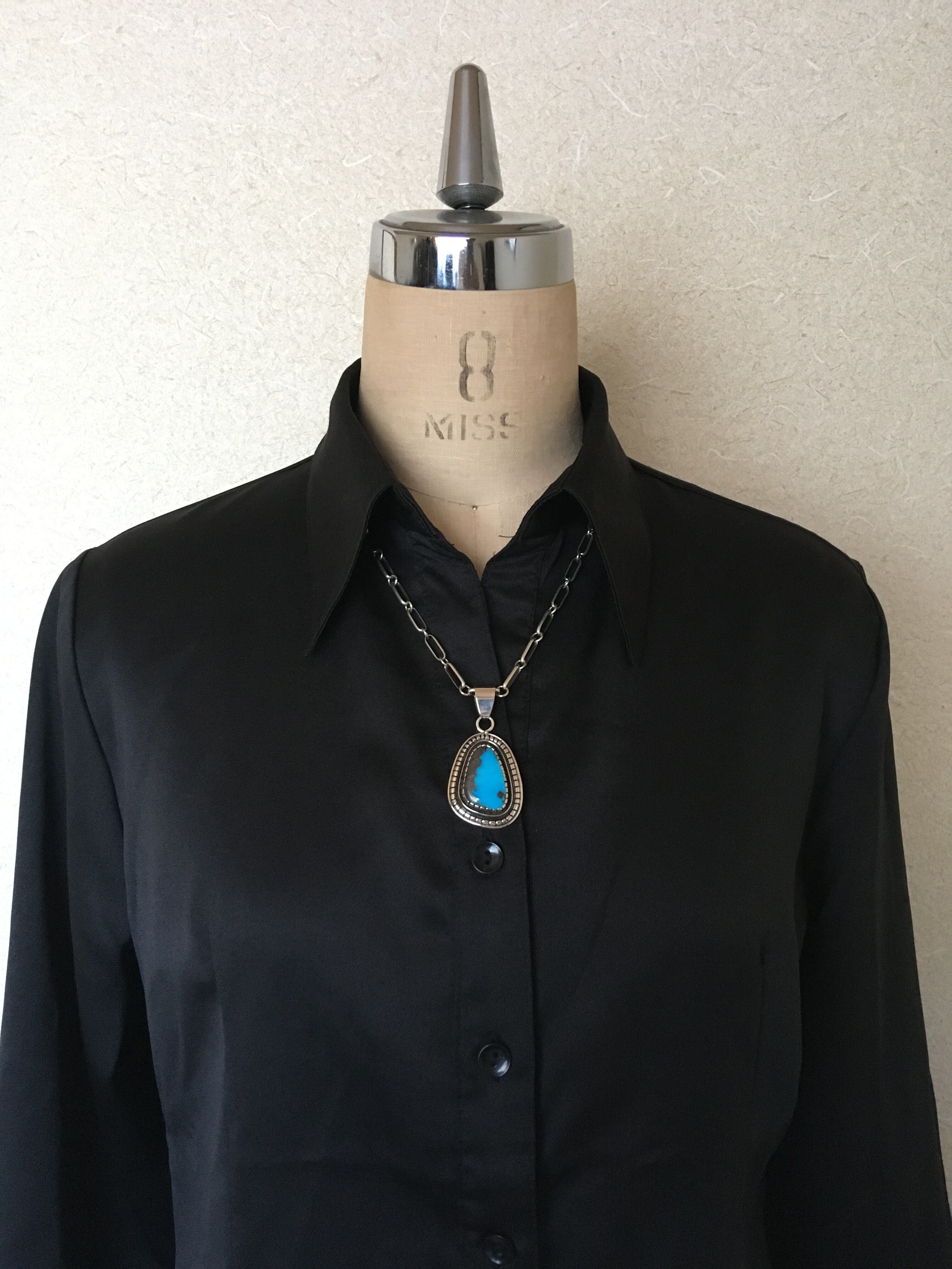 アリゾナ州ビズビー鉱山で採れたナチュラルターコイズのカボションをマリアンネズに渡してオーダーした世界にひとつのペンダントです