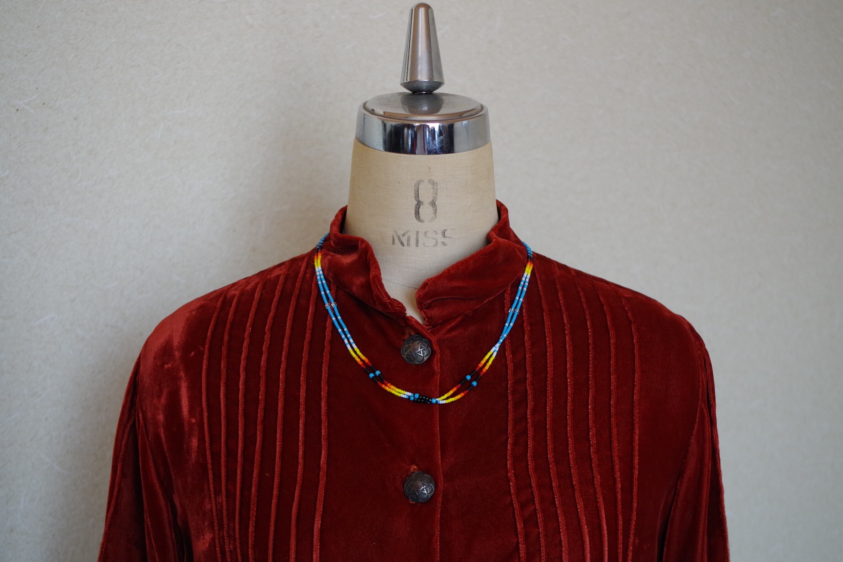 ナバホ族 Chris Yazzie クリスヤジー作 ハンドメイド ビーズネックレス 青 51cm インディアンジュエリー