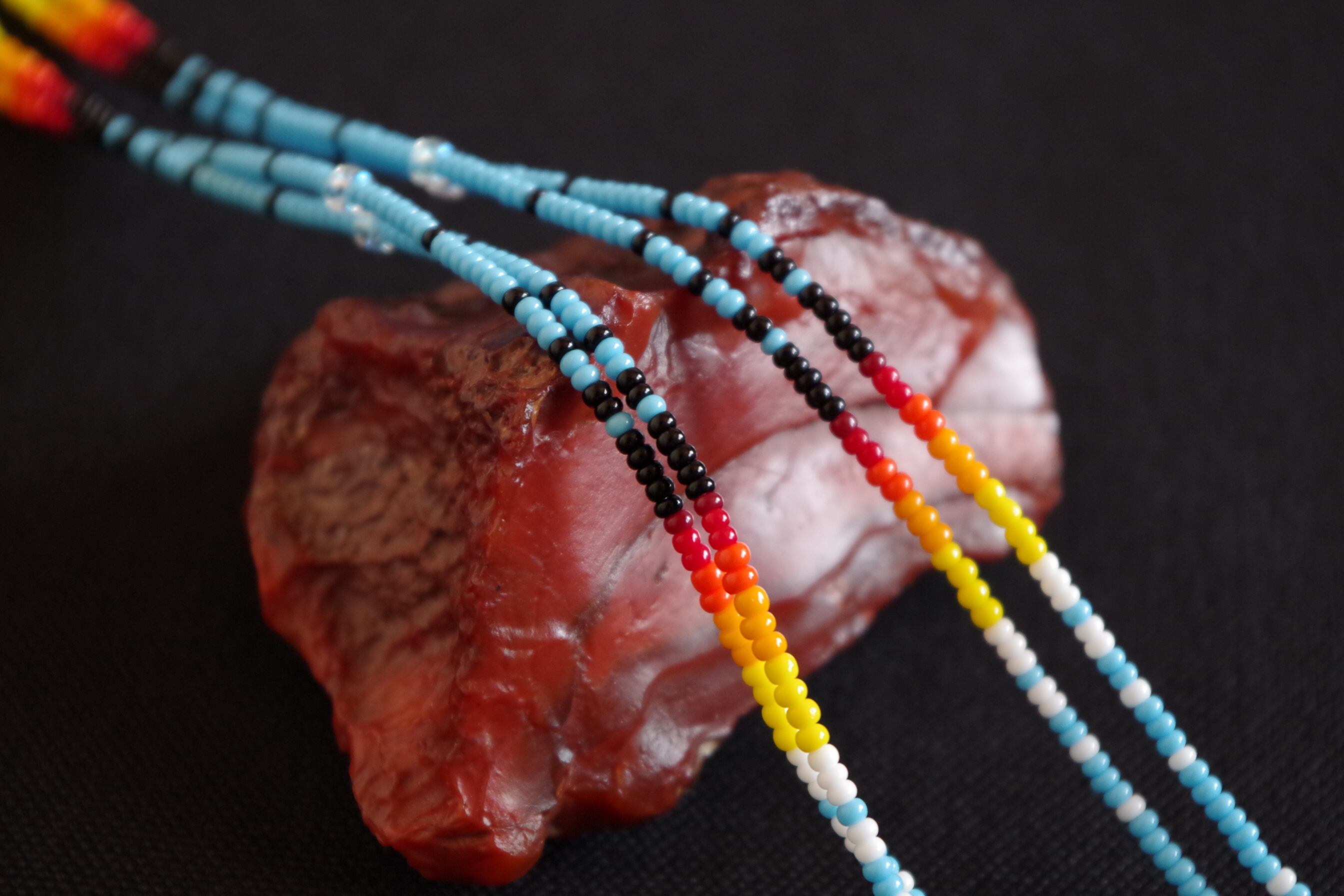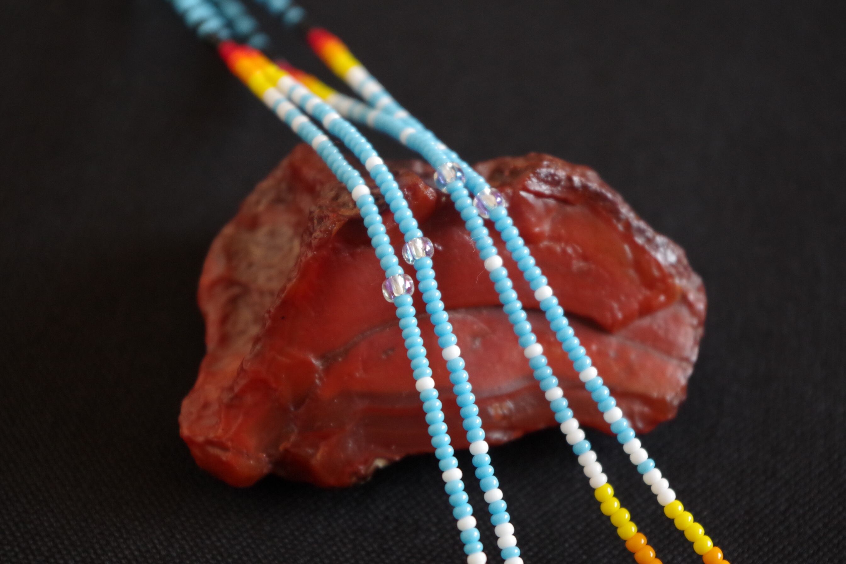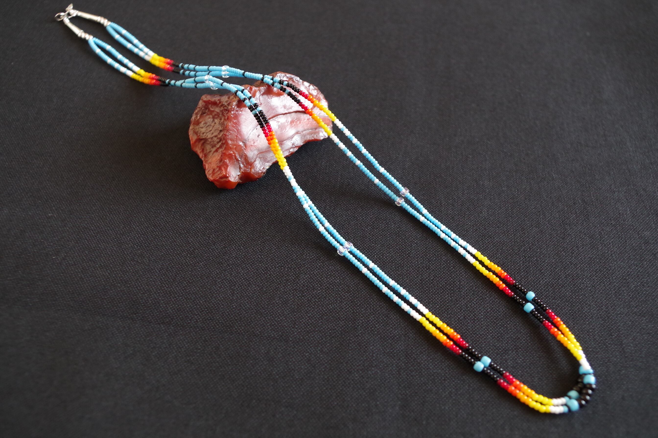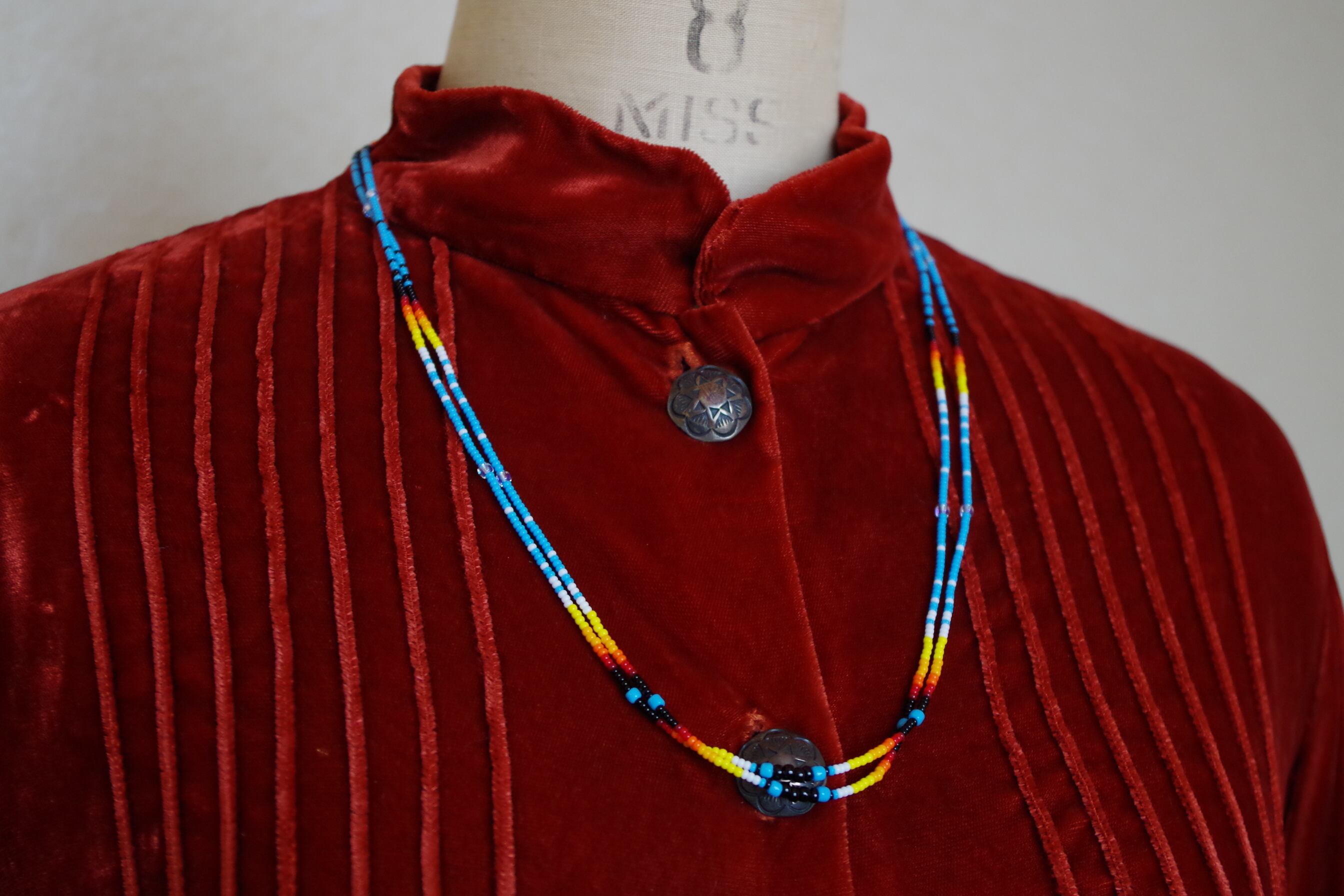ナバホ族 Chris Yazzie クリスヤジー作 ハンドメイド ビーズネックレス 青 61.5cm インディアンジュエリー