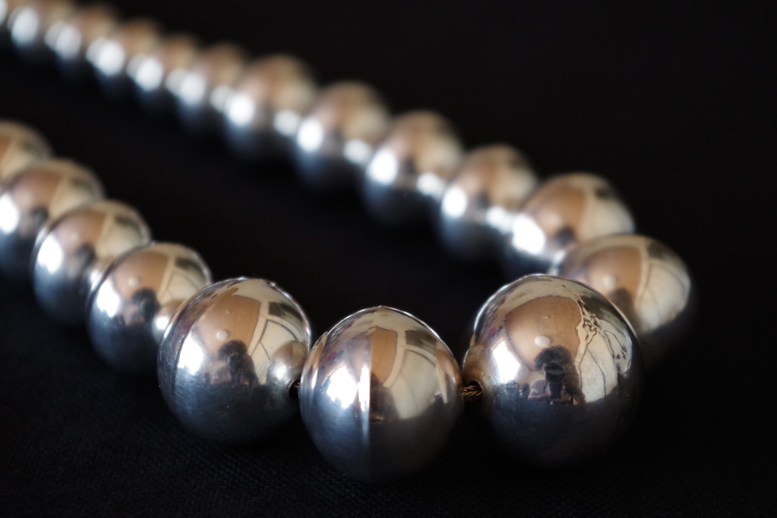 ナバホの真珠と称される一珠一珠手間をかけて手作りされた、とても美しいナバホ族伝統のシルバービーズネックレスです。