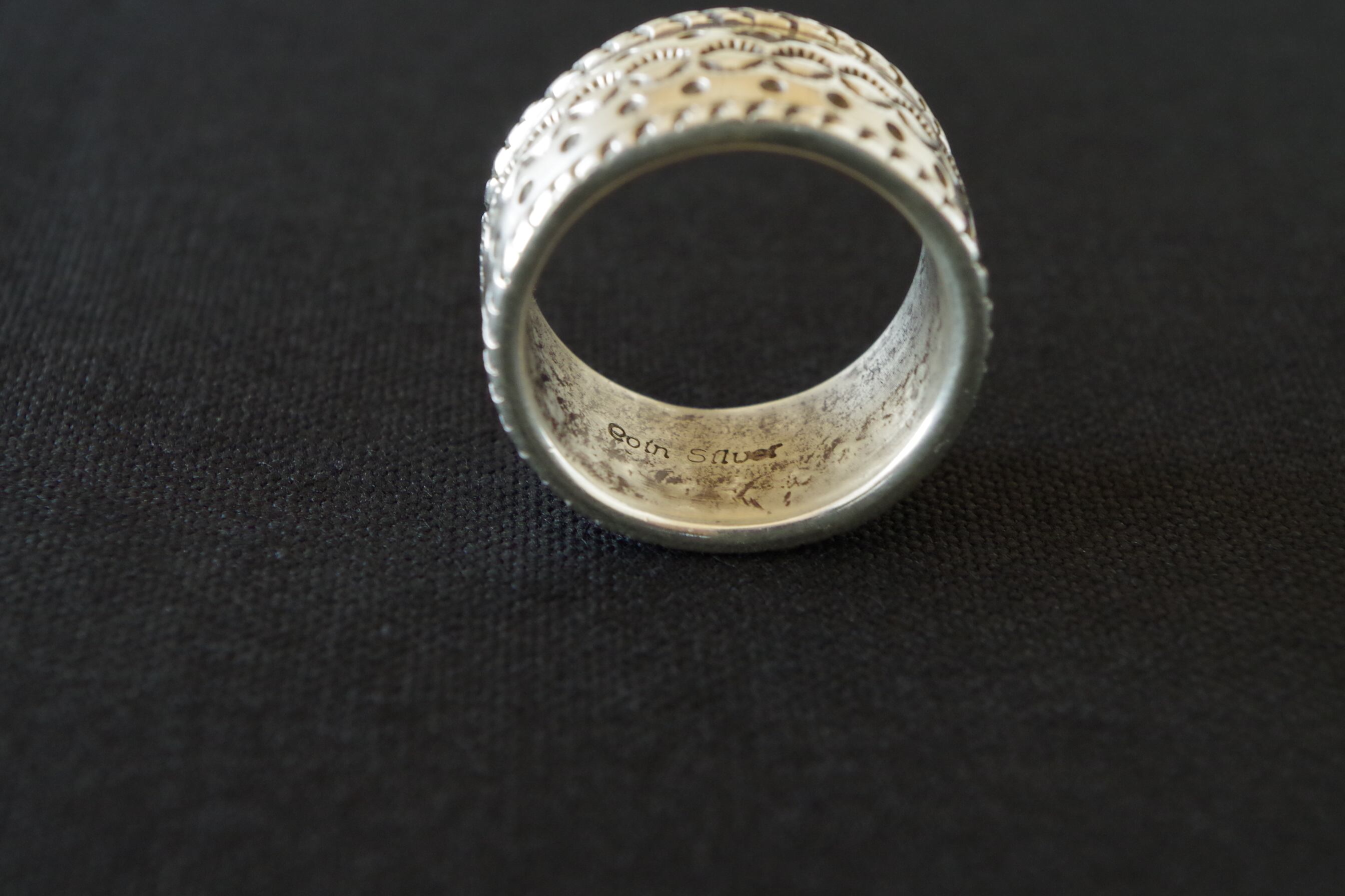 ナバホ族 Quaid Shorty クエイドショーティ作 12mm幅 スタンプ コインシルバーインゴットリング 21号 インディアンジュエリー