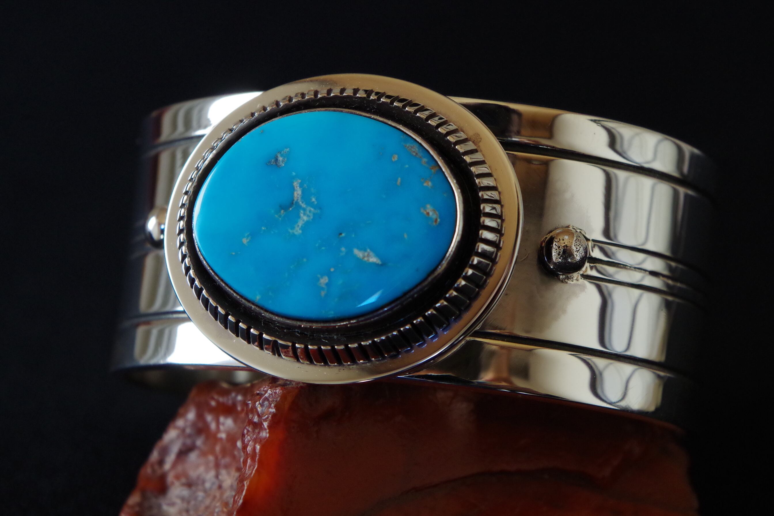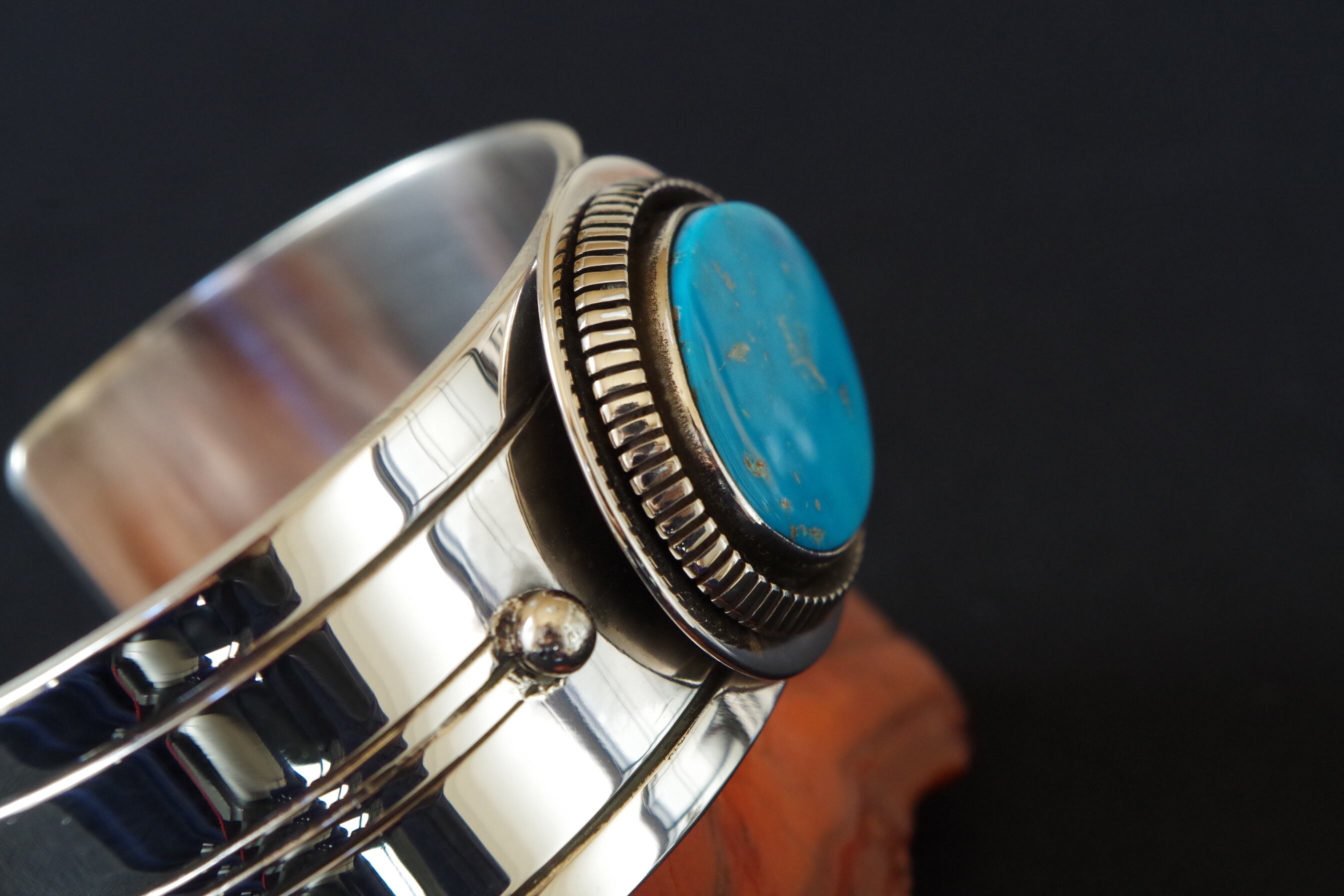 1950'sにネバダ州ブルージェム鉱山で採れたナチュラルターコイズカボションをマリアンネズに渡してオーダーした世界にひとつのバングルです