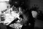 父であるハリー モーガン譲りの繊細で正確なスタンプワークとリポウズ(裏打ち)が持ち味