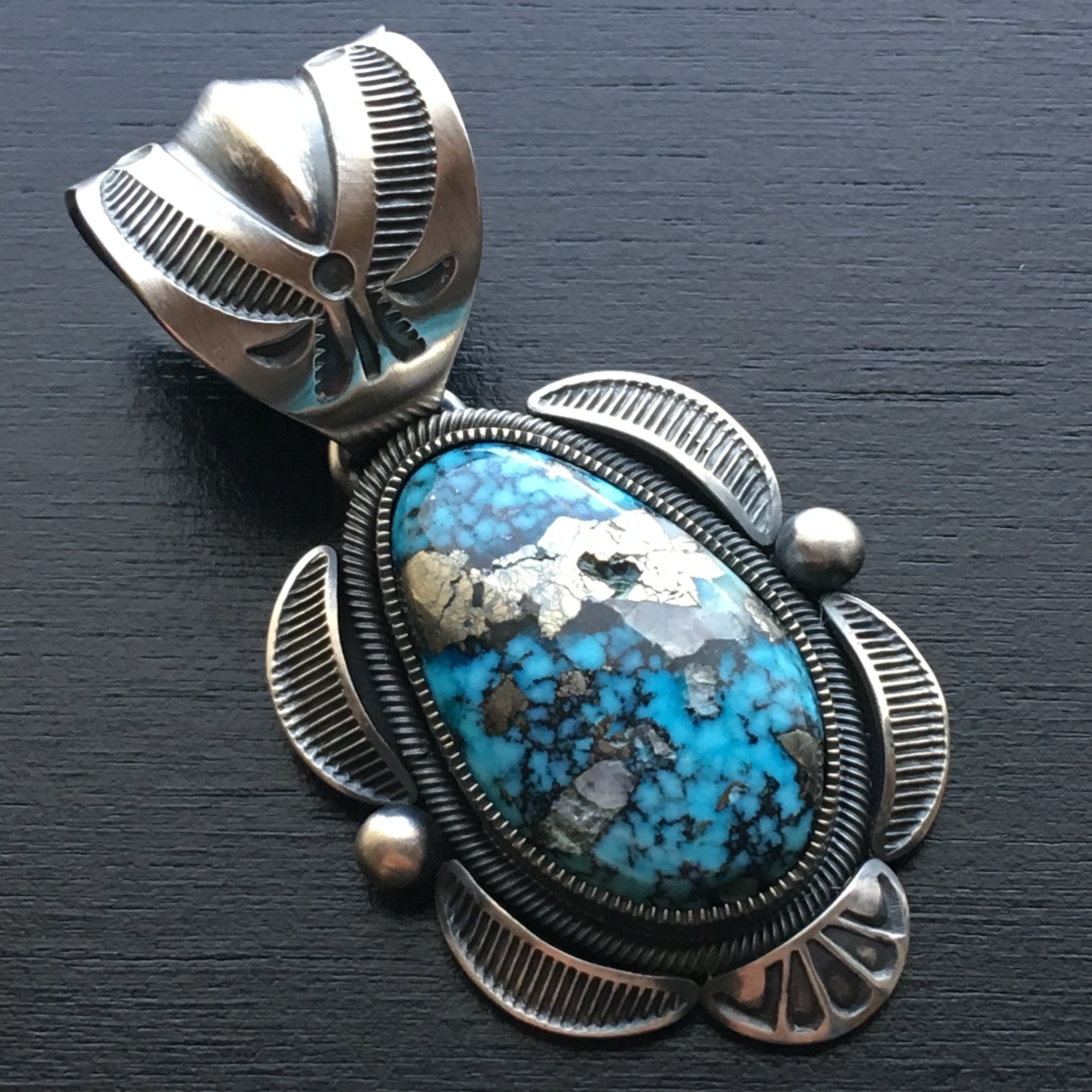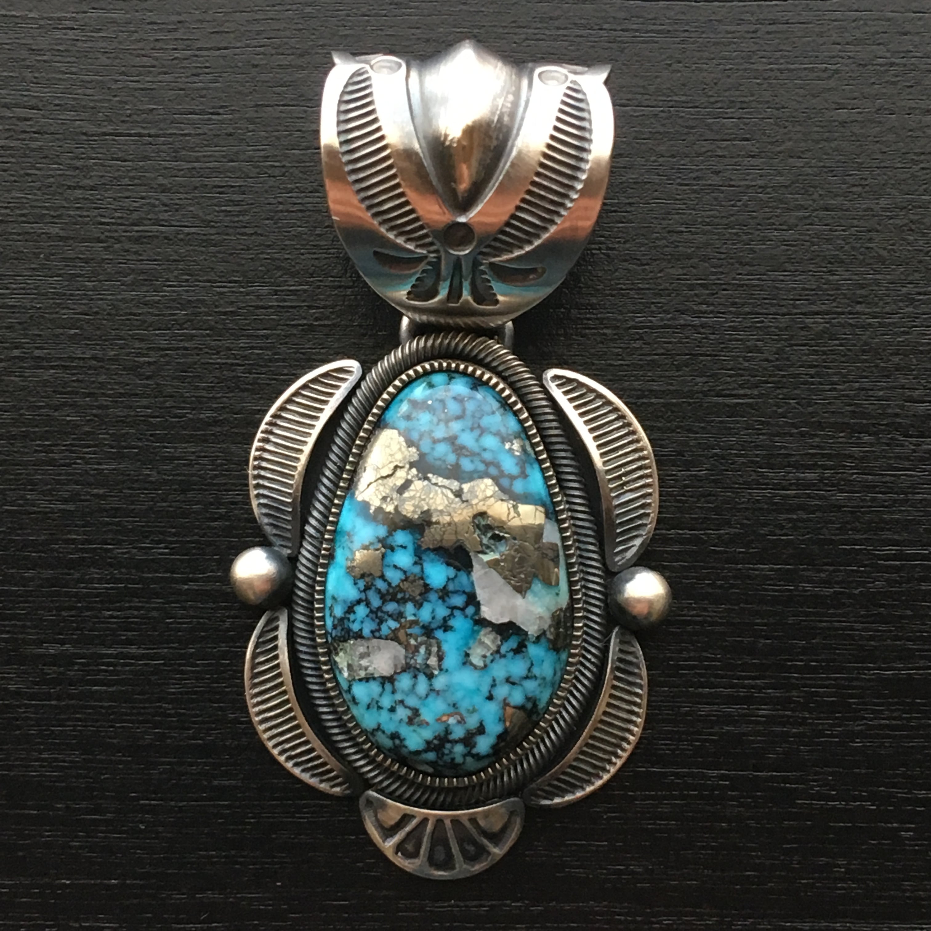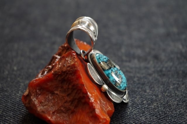 ナバホ族 Jacob Morgan ジェイコブモーガン作 イサカピーク ターコイズ リポウズ シルバー ペンダント
