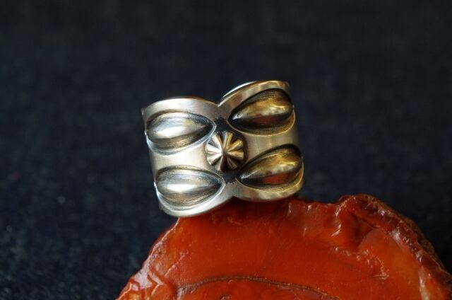 ナバホ族 Jacob Morgan スタンプ エンボス シルバーリング 19号