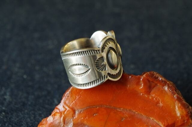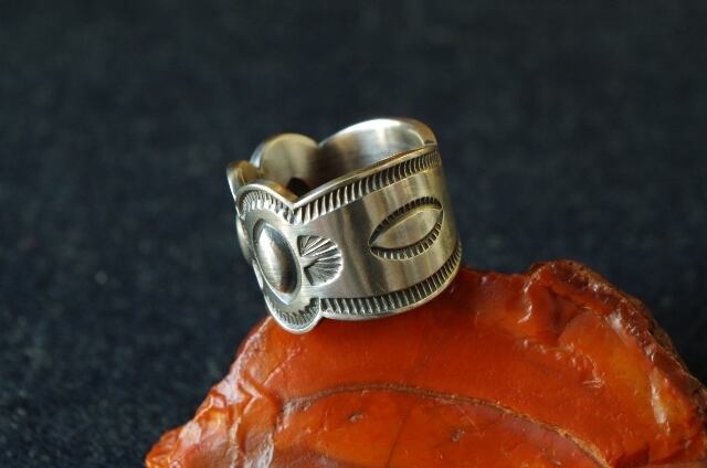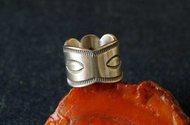 ナバホ族 Jacob Morgan スタンプ エンボス レディース シルバーリング 13号